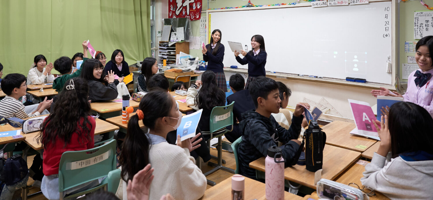 同じく高校3年生の横田さくらこさんは、この日の授業で堂々と場の空気を回していた。教室では小学生5〜6人を高校生2人が受け持つパターンが多かったが、横田さんは単身受け持ち、子どもたちを盛り上げていた。万博や文部科学省の記者会見など、数多くの発表経験を積んできた横田さんには、ベテランの風格が漂っていた。
