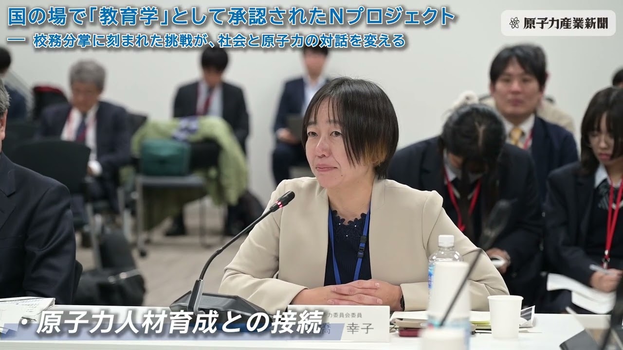 内閣府で開かれた原子力委員会定例会合で、京都大学の中村秀仁助教が進める「Nプロジェクト」が紹介された。高校生が科学を学び、社会に向けて発信する実践を核とする同プロジェクトは、原子力・放射線の理解促進にとどまらず、文理の壁を越えた対話型学習として評価を集めた。議論では、“校務分掌”に位置づけられた点や教育効果データの蓄積が注目され、汎用性や人材育成との接続について委員から多角的な問いが投げかけられた。
