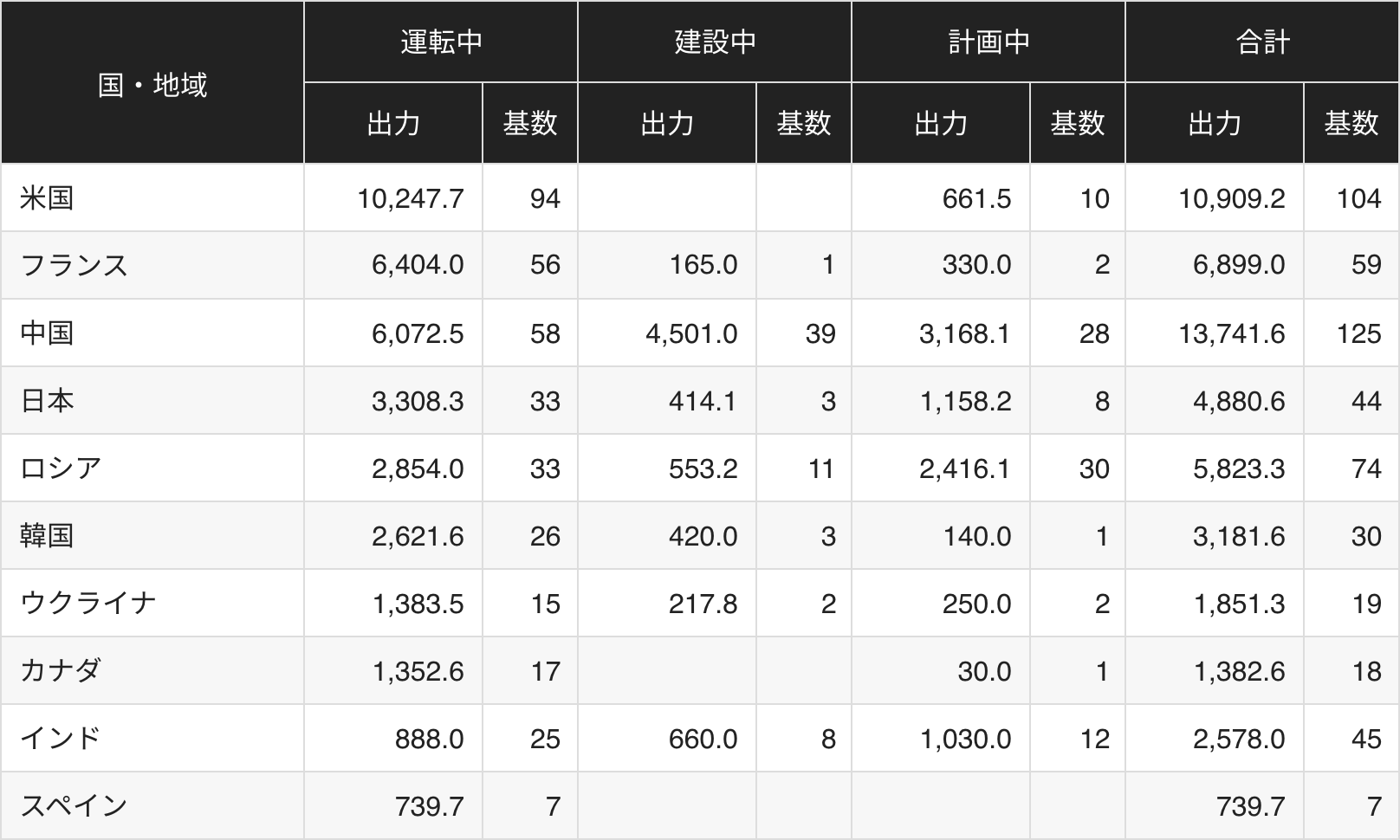 世界の運転中原子力発電所は434基、4億1,609万kW
