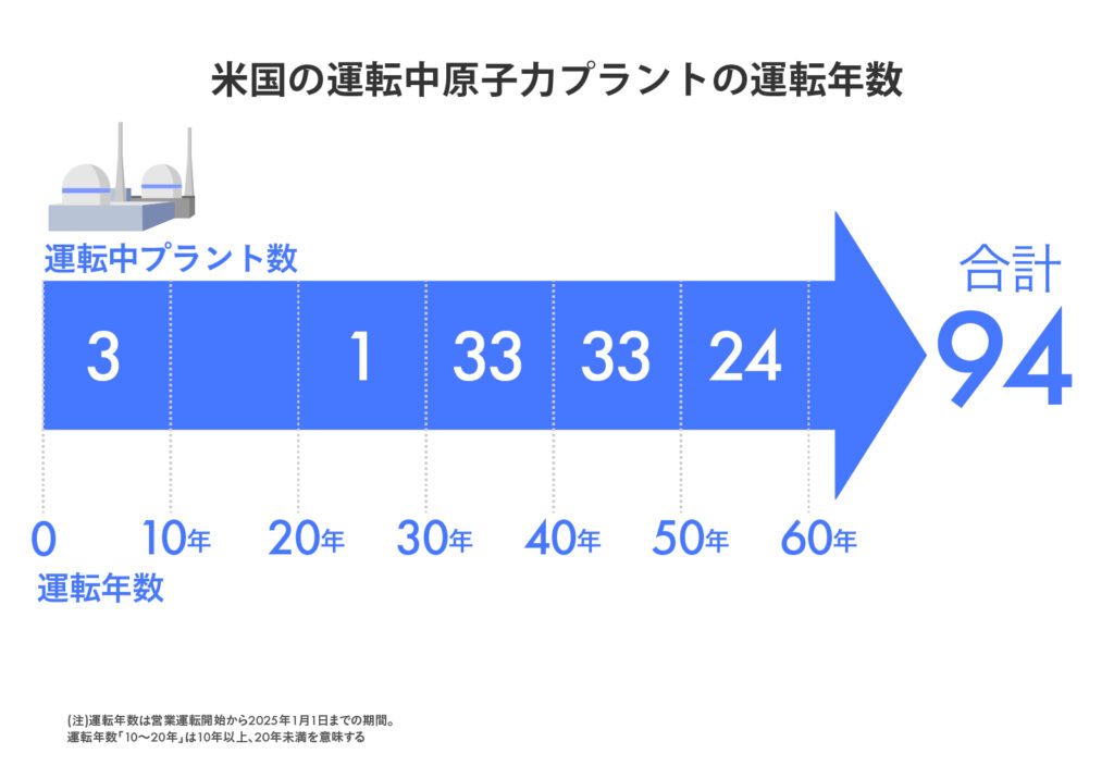 2025年1月1日現在で60%強の57基のプラントが40年超運転を実施中であり、そのうちの24基が50年の運転期間を超えて運転中です。