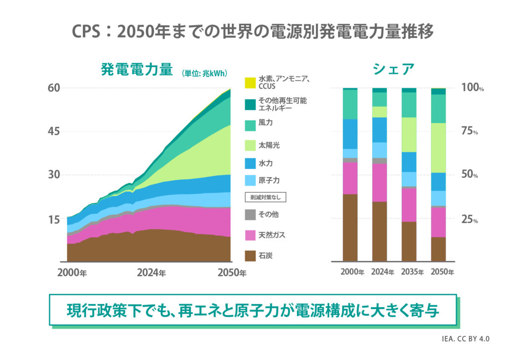 - 「現行政策シナリオ」(Current Policies Scenario, CPS): すでに実施中の政策や規制のみを反映。新技術導入には慎重な見通し。