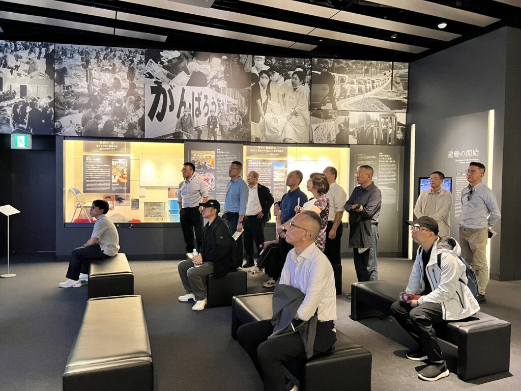 9月23日には、東日本大震災・原子力災害伝承館を訪れ、福島第一原子力発電所の事故のみならず、14年前に発生した未曾有の大規模複合災害に関する展示や復興への取り組みについて説明を受けました。大震災を直接経験していない中国側参加者が真剣に見学する姿が印象的でした。翌24日には、東京電力の廃炉資料館を訪問後、福島第一原子力発電所構内を視察しました。構内では、視察バスから乾式キャスク仮保管設備や多核種除去設備(ALPS)、ALPS処理水を保管するタンクなどを見学し、その後、展望デッキにて1~4号機の廃炉作業の状況について説明を受けました。さらに、ALPS処理水のサンプルを用いた海洋放出に関する説明も行われました。