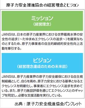 しかし、JANSIは、安全性の向上に向けて進めるべき事業をより重点化し、発電所の円滑な再稼働と安全で安定した運転の確保といったミッションを効果的に遂行するためにミッション・オリエンテッドな組織とした。そして、ピアレビューの実施、安全性向上策の提案、また基盤的支援活動といったJANSIの3つの事業の柱をベースとした構造に改め、ガバナンスの強化を図っている。
