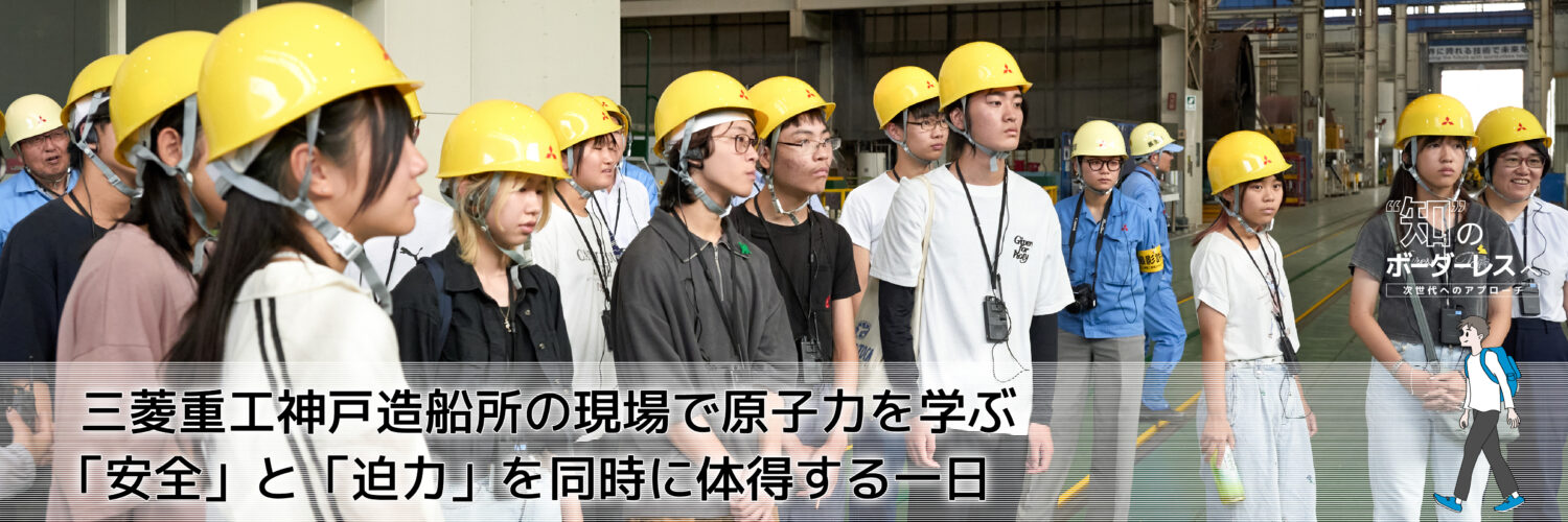 大阪府立千里高等学校の生徒たちがこの夏、Nプロジェクトの一環として神戸市の三菱重工業 神戸造船所を訪れた。キックオフ授業に続く第二弾は、原子力産業の「現場」を歩き、耳で聞き、手で確かめる見学会である。講義、工場見学、運転訓練用シミュレータ体験、展示ホールという緩急をつけた導線の中で、生徒たちは大型設備の圧倒的なスケールと、異常時を想定した多重の安全設計という二つの視点を同時に獲得した。アンケートには「原子力のメリットと注意点が整理され全体像が見えた」「巨大な圧力容器に胸が高鳴った」「適当に触っても安全側に止まる設計に驚いた」といった率直な声が並ぶ。現場での体感が座学を立体化し、得た理解を「自分の言葉で社会へ返す」次のステップへと踏み出す契機になっている。