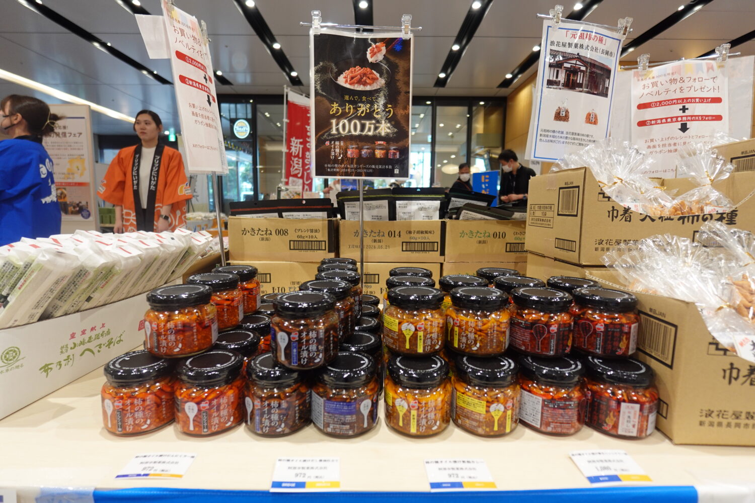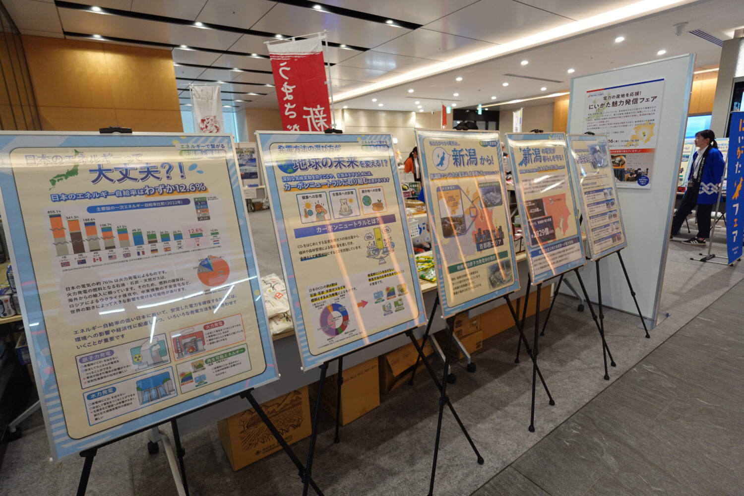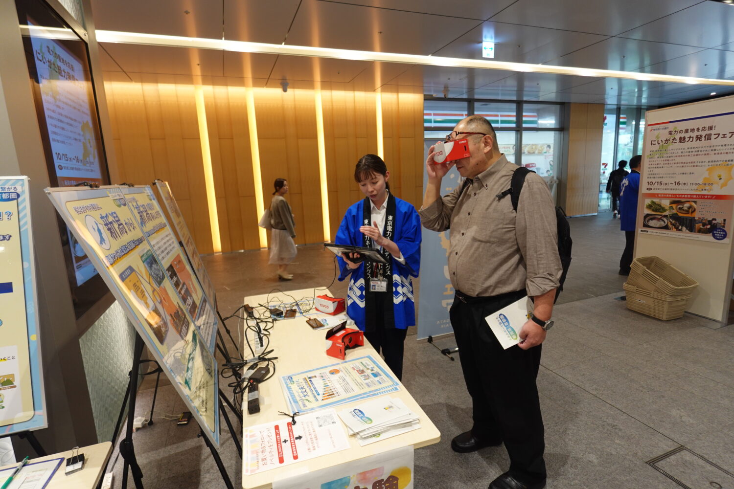 会場では、新潟県産の米や日本酒、菓子など約130品目の特産品を販売。特に「笹団子」や「柿の種のオイル漬け」が人気を集め、訪れた人からは「東京で新潟の味を楽しめるのがうれしい」といった声が聞かれた。また、エネルギーの生産地としての新潟の役割を発信しようと、東京電力によるパネル展示やVR映像の体験コーナーも設けられている。柏崎刈羽原子力発電所の内部をVRで見学できるほか、新潟県内での発電事業や原子力発電所の安全対策への取り組みなどが紹介されている。