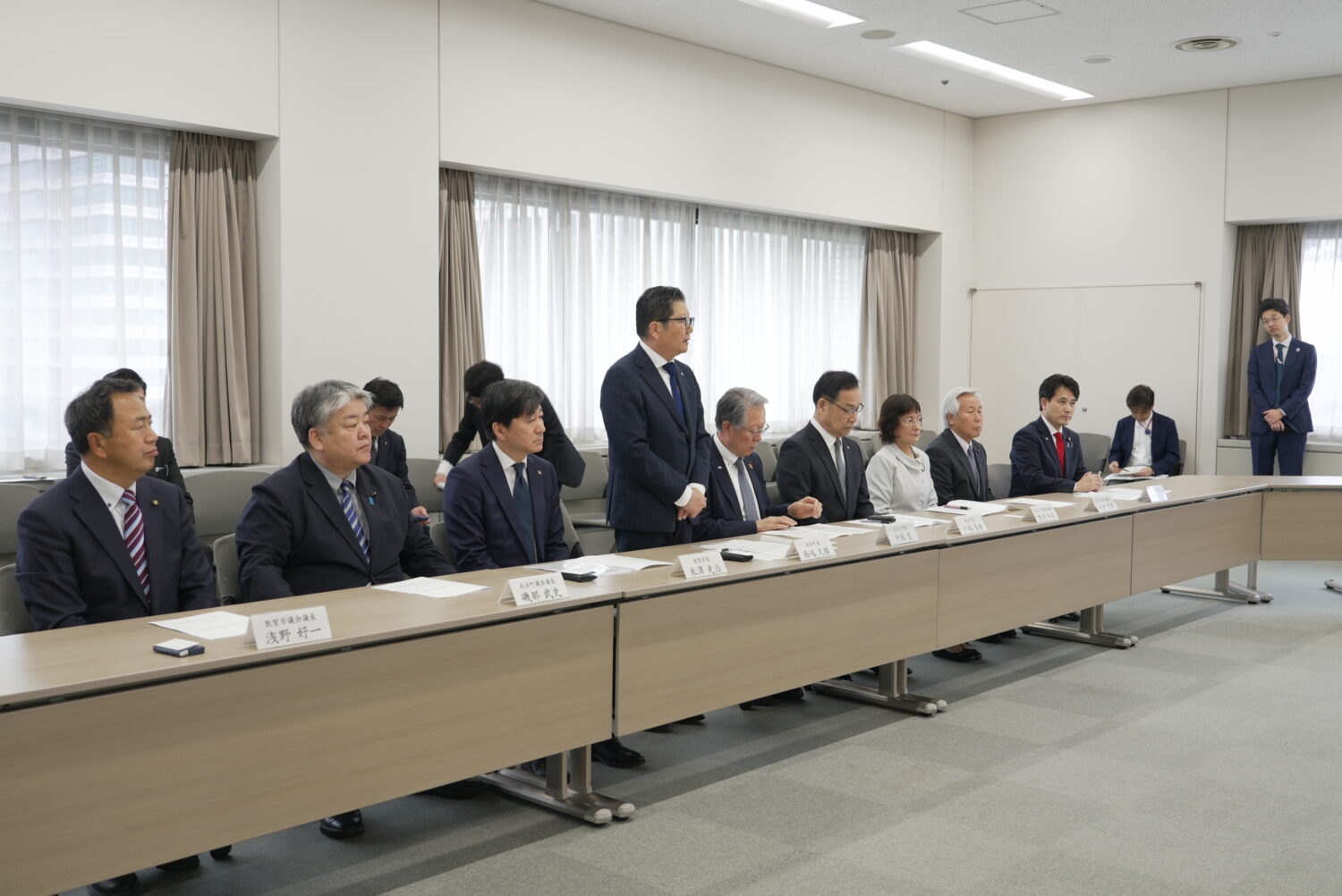 要請書を受け取る井野俊郎副大臣(左から5人目)