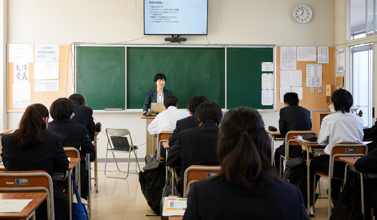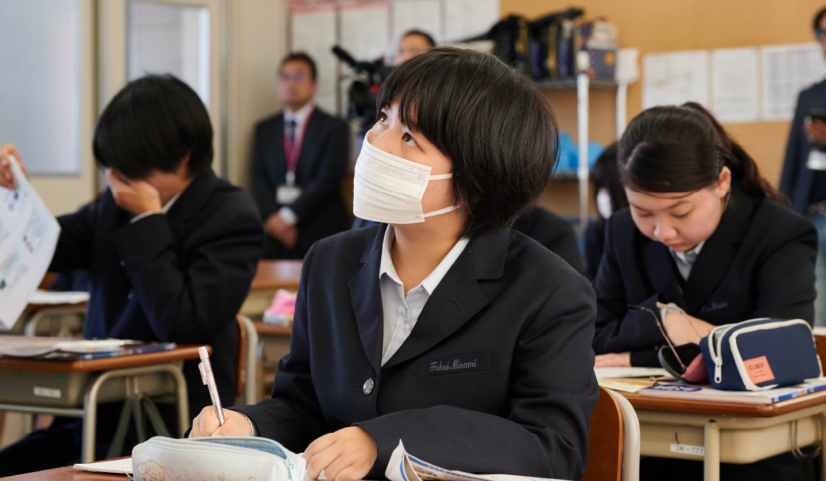 午後の授業。昼食後の静けさの中、教室にはわずかに緩んだ空気が漂っていた。だが、越智先生の話が進むにつれ、生徒たちの姿勢が少しずつ前のめりになっていった。