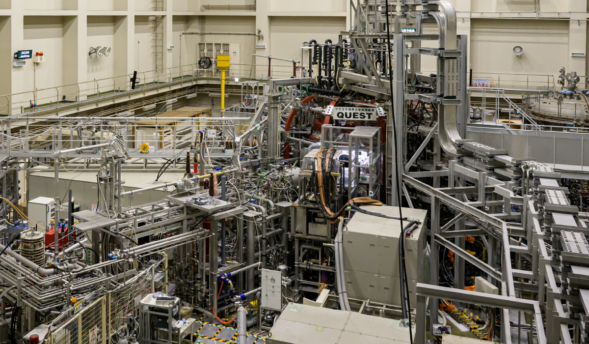 その後参加者は、九州大学の核融合研究装置「QUEST」を見学した。建屋に入ると目に飛び込んでくるのは、巨大な真空容器や複雑に張り巡らされた配管、制御室に並ぶ計測機器やモニター群であり、そこは完成された未来施設というよりも、研究者と学生が日常的に装置を立ち上げ、調整し、実験を積み重ねている現場だった。
