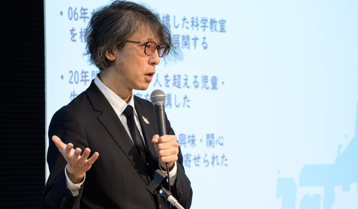 中村氏が語った出発点は、自身の長年の活動に対する反省だった。科学に理解ある社会を実現するため、科学が苦手な人にも科学を好きになってもらおうと20年以上にわたり全国各地で科学教室を実施し、延べ1万3,000人以上の児童生徒と向き合ってきた。しかしコロナ禍を機に過去のアンケートを精査したところ、参加者の多くがもともと科学に関心を持つ層であったことに気づいたという。「科学を縁遠く感じている人に届けたい」という当初の目的が、全く果たされていなかったわけだ。