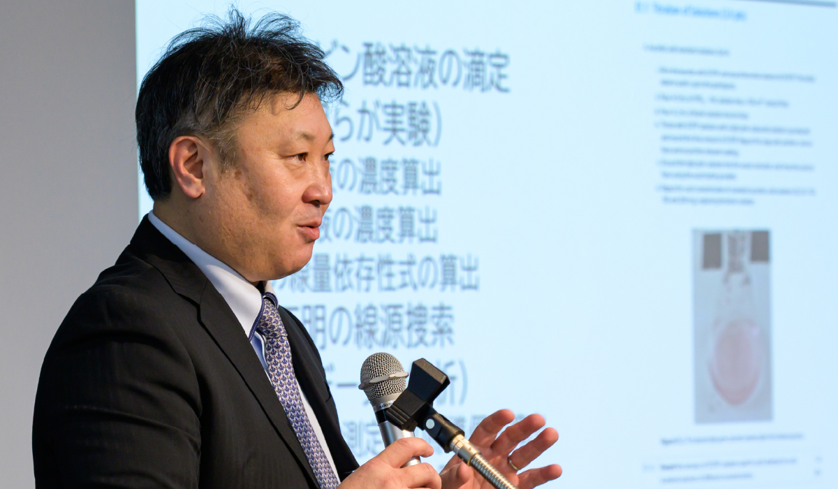 加速キッチンの発表を行ったのは、代表を務める早稲田大学理工学術院総合研究所 研究院准教授の田中香津生先生である。さらに、実際に活動に参加している学生として、東京理科大学 工学部 工業化学科2年の久保田佳歩さんが登壇した。研究者と学生の双方から語られたことで、この取り組みが単なる教育プログラムではなく、世代を横断した探究コミュニティであることが浮き彫りになった。