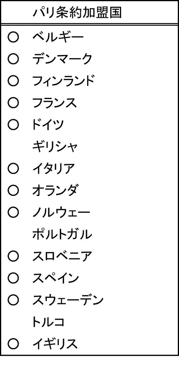 2010年5月5日時点において、ブラッセル補足条約には、パリ条約加盟国のうち以下の12カ国(○印)が加盟しています。