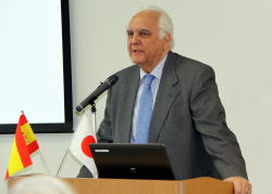 スペイン側を代表して挨拶したスペイン原産のA.コルナド理事長(=写真左)は、同国の原子力産業について、競争力があり堅固かつ経験も豊富であると形容し、すでに40か国以上のエネルギー・原子力部門にスペインの技術が普及している点を強調しました。