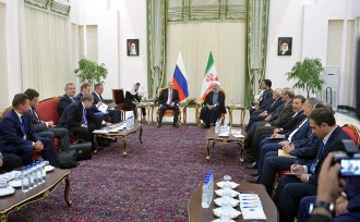 ロシアのV.プーチン大統領は23日にイランを訪問し、同国のH.ローハニ大統領と原子力の平和利用を含むさまざまな分野における両国間の協力強化で合意した(=写真)。サレヒ長官によると、JCPOA交渉期間中もロシアとの協力関係は良好で、プーチン大統領は23日に、イランとの原子力協力拡大における制約や条件を解除する政令に署名。同じ日にモスクワで公表された同政令では、イランに対する機器と技術の販売やイランからの濃縮ウラン輸入、および原子力関連分野での共同投資について制限の解除が明記されたと述べた。また、イランが研究目的の安定同位体を生産できるよう、ロシアが生産設備の改修も支援することになったと説明。イランとしてはさらに、ブシェール原子力発電所で必要な核燃料を確保するため、ロシアの許可を受けてブシェール原子燃料複合施設の建設を計画していることを明らかにした。ただし、これらの制限すべてが解除されるのは、イランがJCPOAの合意事項を履行していることが確証された場合に限るとみられている。一方、ロシア大統領府も23日、原子力分野におけるイランとの互恵的な協力関係を継続していくと発表しており、ロシアの支援により1号機が稼働中のブシェール発電所では、すでに2、3号機の建設に向けた作業が始まったと断言。JCPOAで承認された原子力プログラムの範囲内でイランの活動に最大限の支援を提供していくとしたほか、安定同位体の生産を可能とする設備改修に力を貸すとの考えを示している。